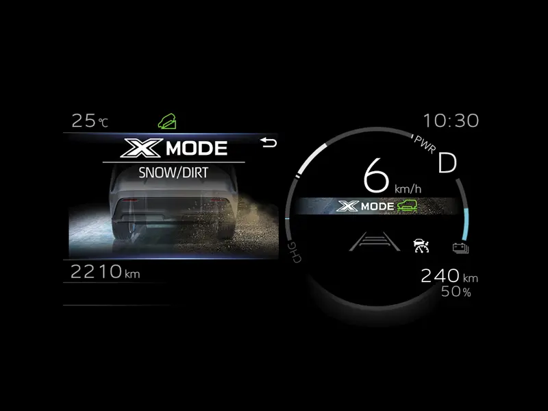 Subaru a intégré tout son savoir-faire dans un système de transmission intégrale AWD à moteurs électriques indépendants à l’avant et à l’arrière, associé au X-MODE, afin d’améliorer les capacités sur terrains difficiles. Grâce au contrôle rapide et précis des moteurs électriques, ce système offre une stabilité et des performances remarquables, permettant aux SUV Subaru d’affronter une grande diversité de conditions de conduite en toute confiance.